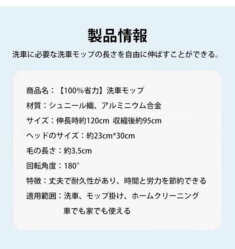 【100%省力】洗車モップ